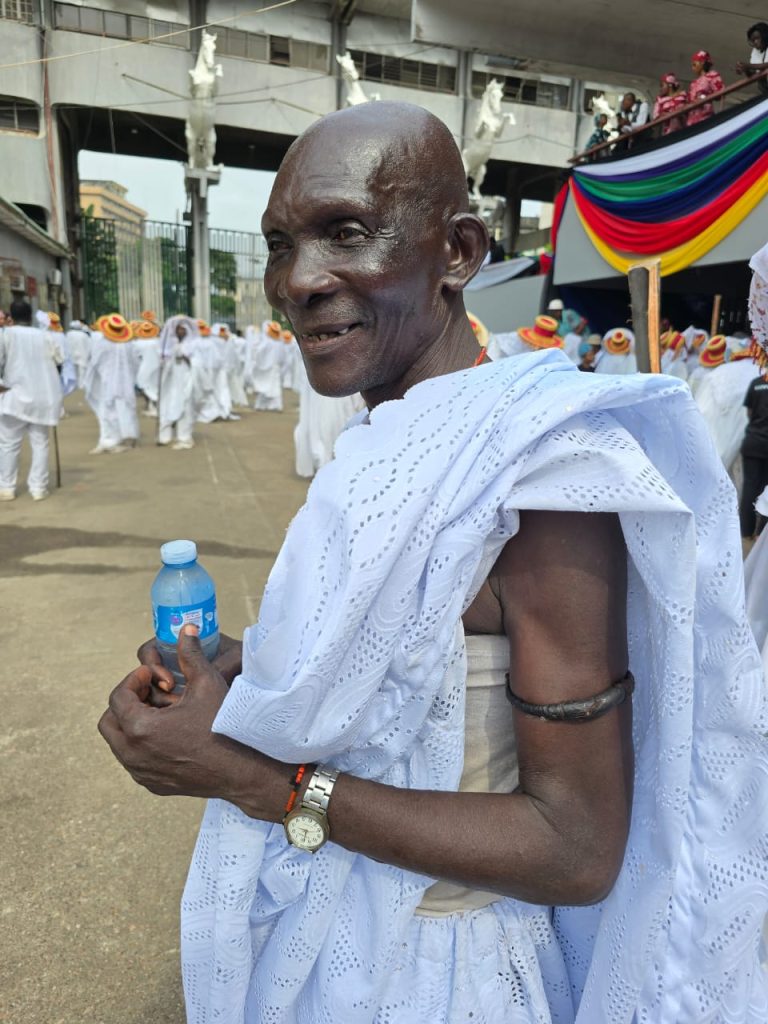 One Eyo group followed another, measured steps, chanting voices, ancestral authority unfolding before tens of thousands. Old and young alike eagerly sought photographs with the Eyos as they completed their parade.